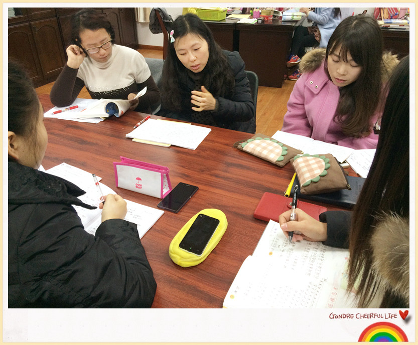 课后,在刘叶花主任的带领下一年级老师齐聚办公室,纷纷针对这两节课发表了自己的意见和看法。刘主任更是悉心指导着青年教师的成长,她提出作为青年教师,要更多地关注学生,增加生生互动。教师应站位再高一些,设计再结构化一点,并能提升自身捕捉资源的能力.......此外刘主任还大方与我们分享了她从教二十余年的一些教育故事,让我们在轻松愉快的氛围中享受教育带来的无限乐趣,激发了在座每一位青年教师主动发展的需求。新东方教育集团总裁俞敏洪曾经说过:“一个人行走很是孤单,可能会逐渐迷失自我......”但正是因为有了青年教师成长团,将年龄、兴趣、资历差不多的我们聚集在一起,能够围绕共同的话题实践、研究、探索,追寻着教育的梦想。