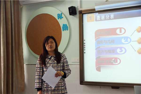 四月,春暖花开,草长莺飞。在这春意盎然的日子里,学校为加强教师队伍建设,提高教学水平和业务素质,有效促进教师专业化成长,举办了第二届数学青年教师评优课活动。根据学校的比赛章程,参加本次比赛的人员为年龄在30周岁以下的青年教师。比赛主要包括两轮:第一轮说课、粉笔字;第二轮课堂教学评比。本次比赛还要求备课、制作ppt和撰写说课稿全部独立完成,且每轮比赛都通过抽签决定顺序和班级,保证了比赛的公正和公平。数学组很荣幸地邀请到了张辉校长、范丽老师、傅海燕老师担任本次比赛的评委。
