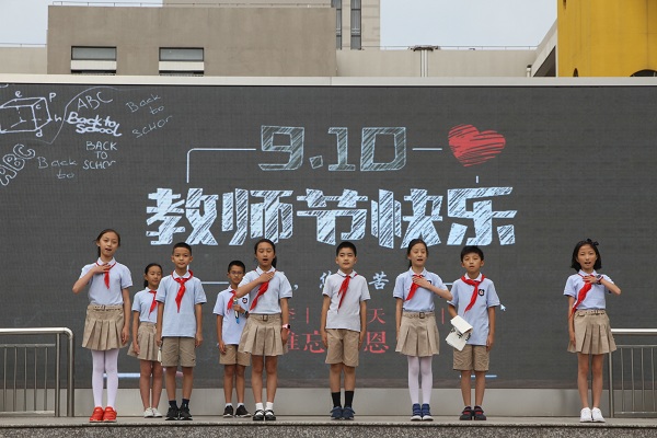 在龙城小学,我们遇见了一群睿智温暖的老师,带领我们徜徉在知识的殿堂,教授我们做人的道理。当升旗仪式遇见教师节,我们用力所能及的方式给老师送上诚挚的祝福。