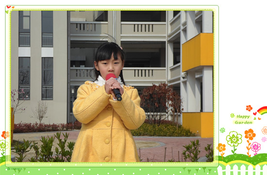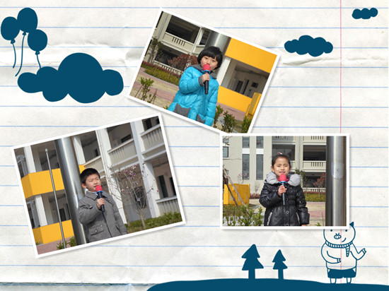 伴随着“春天在哪里”这一首轻快的歌曲,又一周的升旗仪式开始了!一1班的小朋友首先和全体队员们一起分享了寻找春天的喜悦:“春天到了,小燕子从南方赶回来了,他们在天空中飞来飞去,快乐地做游戏。布谷一边飞一边叫,催促农民伯伯赶快播种。粉红的桃花、红艳艳的杏花、雪白的梨花全都开了!”(宦鹏辉)