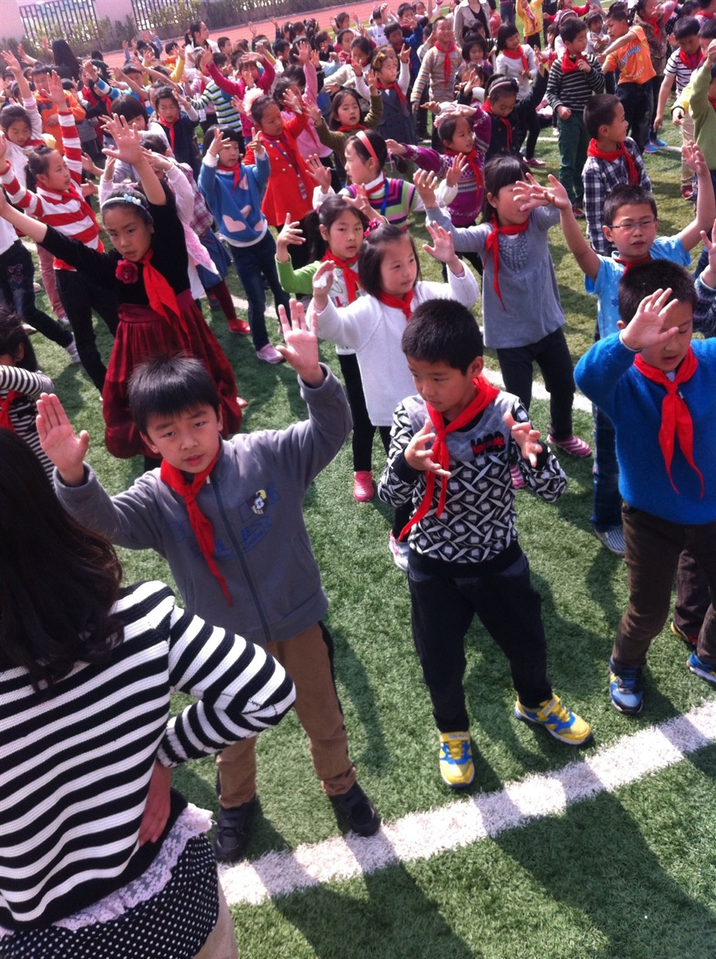 由舞蹈组老师们精心编排的集体操,韵律十足,活力十足!小龙娃们在节奏感强的韵律中,展示着自己的优美舞姿,老师们也不甘示弱,边学边跳和孩子们一起动了起来。集体操最后一个项目组成了一个大花瓣,也为本周即将举行的体育节营造了浓郁的氛围!