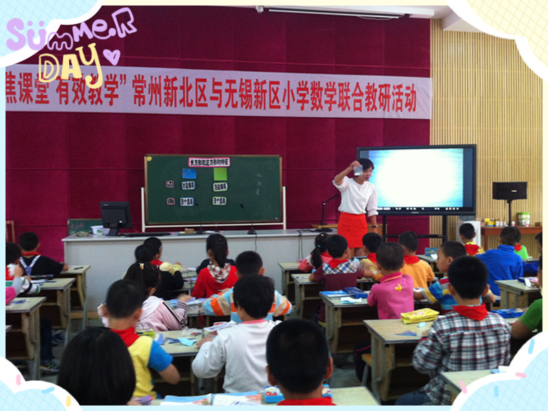 2013年10月11日,常州新北区与无锡新区小学数学联合教研活动在无锡坊前实验小学开展。此次活动的主题是“聚焦课堂,有效教学“。我校钱丽琴老师参加了本次活动,与无锡坊小的朱老师同课异构,执教三上的《长方形和正方形的特征》。 朱老师的课堂给予学生充分经历猜想验证的过程,如行云流水般顺畅,充分预设学生生成,淡化难点,突出重点,一点小波澜也成了课堂中靓丽的风景。钱老师的整堂课都洋溢着自信,信任的氛围,这种信来自于老师对教材的把握,对学生的把握,对课堂教学的把握,大问题的设计,学生资源的收集评价,平等互动的师生,生生交流……无不凸显先进开放的教育理念与对生命个体的尊重。