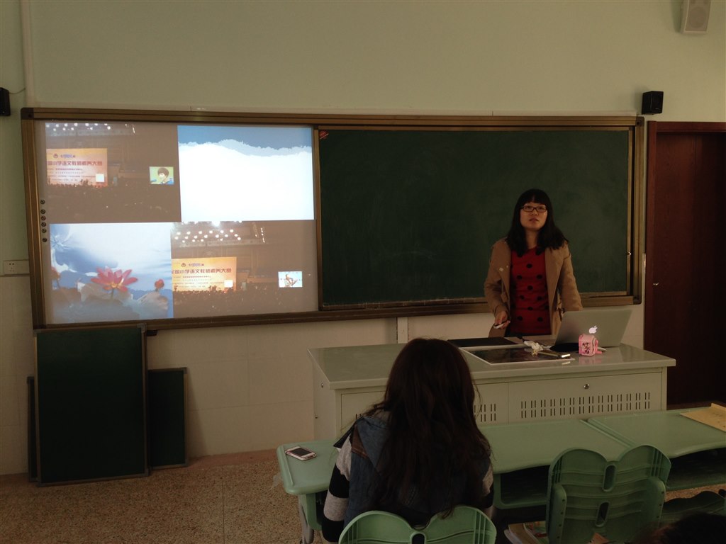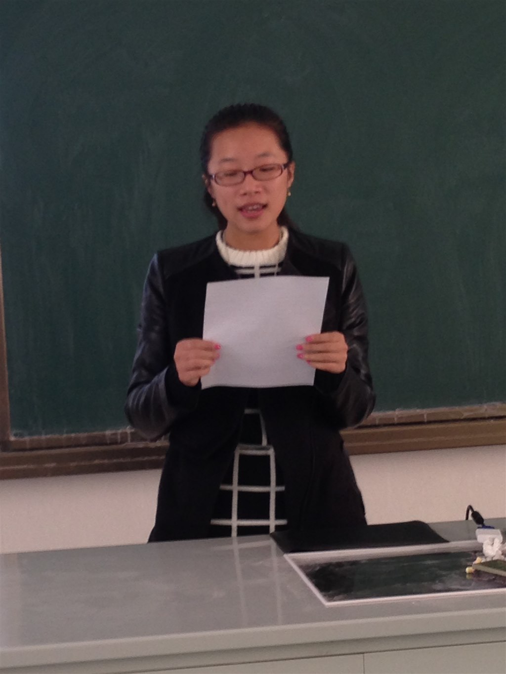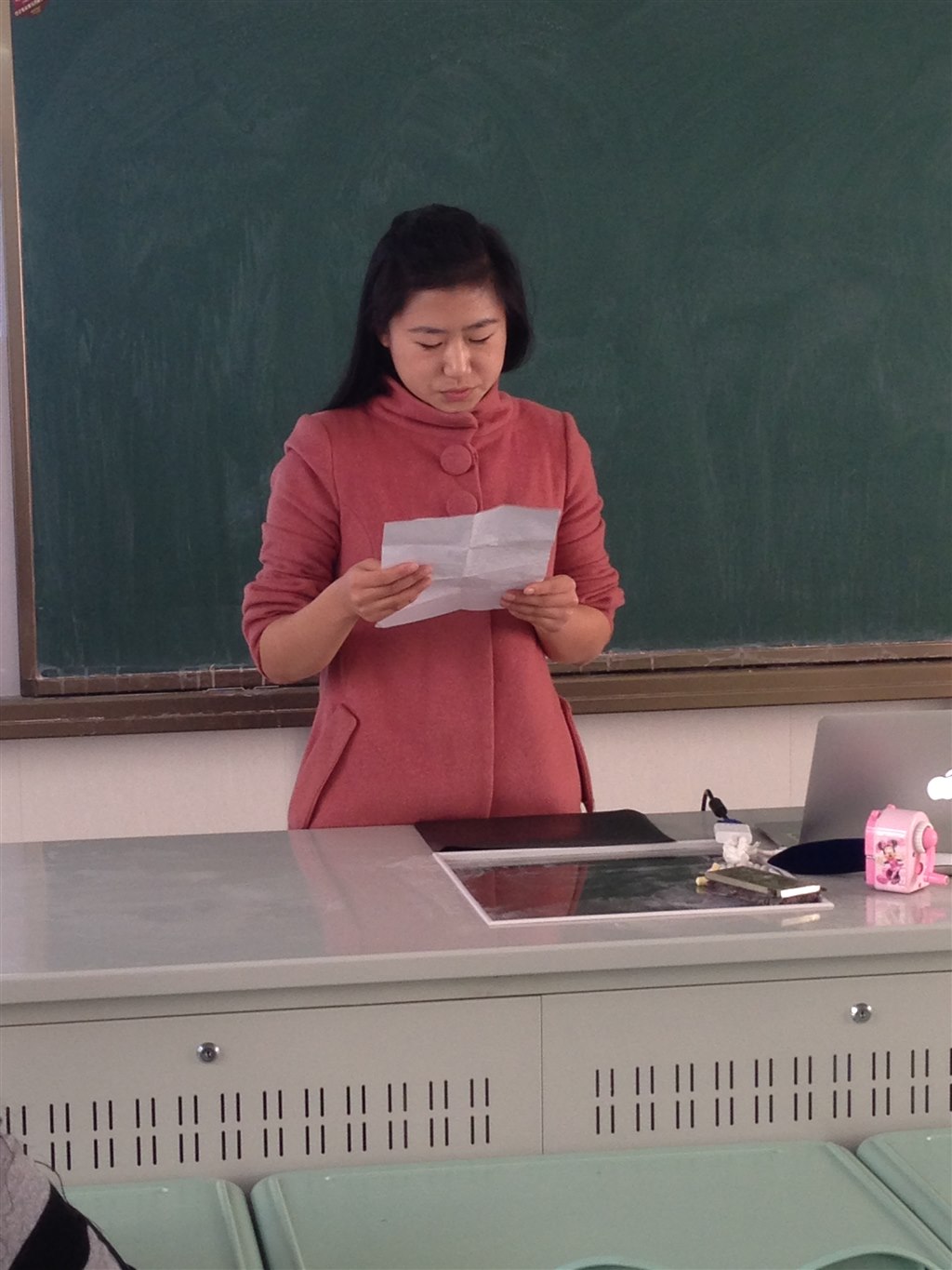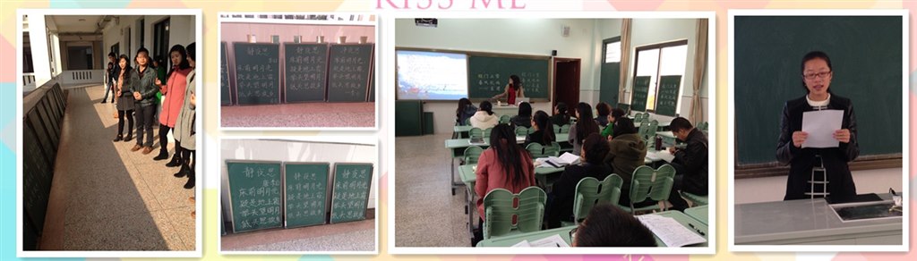 在朗读展示环节,周亚军、李丽华、姚婷莲、唐旎老师上台朗读了课文《花瓣飘香》,殷老师就素养大赛评委老师的观点对这四位老师的朗诵进行了点评:要注意教师朗读的示范性、关注朗读时的段落停顿和语气变化。在粉笔字展示环节,每位语文老师在3分钟内写4个成语,大家共赏共评,展示出了龙城语文教师扎实的基本功。接下来,殷老师又为大家展示了在素养大赛中见到的精彩的个人才艺、课堂教学和知识问答环节。