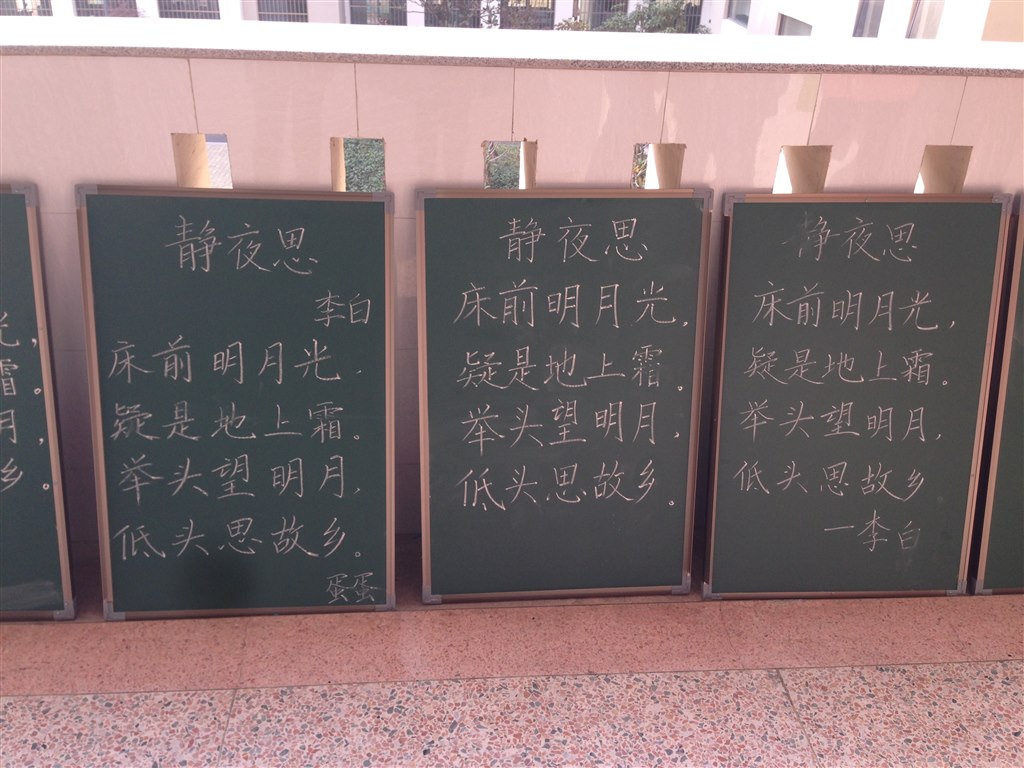活动伊始,各位老师将自己认真书写的粉笔字《静夜思》进行了展示。这些粉笔字有的大气潇洒,有的飘逸娟秀,大家互相观摩、学习,本次粉笔字展示为龙小语文教师创设了一个取长补短的平台。