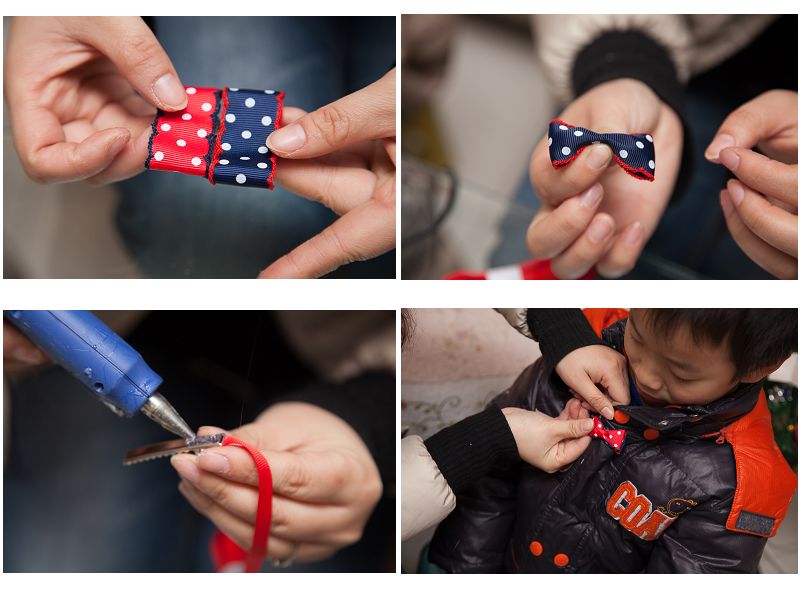 领材料、打结、粘胶……一个个发夹、领夹出现了,虽然跟市场上买的差不多,但是自己做的总是那么情有独钟,制作的过程总是那么带劲!