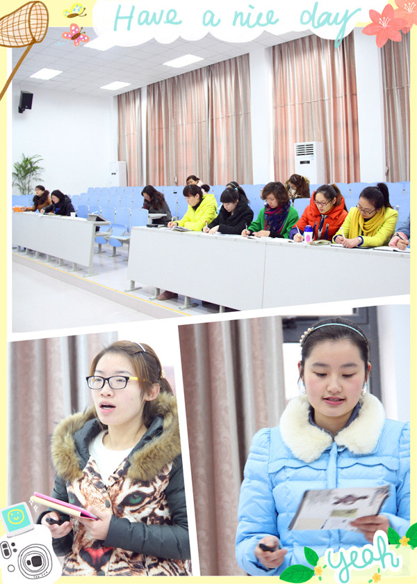 在“2014年江苏省蓝天杯教学设计”大赛中,我校许多老师的教学设计脱颖而出,收获颇丰。为了给每位老师创造更大的发展舞台,历练自己的成长,2月20日上午,我校数学组的高文蔚、阮奕凡老师,综合组的杨茵雯、程英老师以及英语组的朱海燕老师结合“蓝天杯”的教学设计开展了说课比赛。