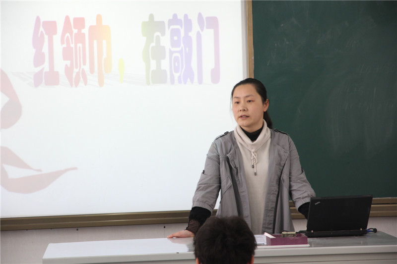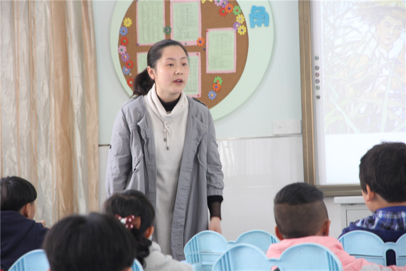王紫瑾老师的班队课《红领巾,来敲门》引导学生从四位小英雄的身上感受、理解少先先锋队的作风。课堂伊始,师生共读绘本《猜猜谁在敲门》,大家津津有味地根据门上的影子猜测门外的来客。接着,四个小英雄来敲门了。勇敢的王二小,聪明的小兵张嘎,说到做到、机智送信的海娃,有着一颗代表“爱”的红五星的潘冬子。孩子们看着视频、听着歌曲、看着课本剧,也用自己的稚嬾的话语诉说着发生自己周围的关于“聪明、勇敢、诚信与爱”的故事。