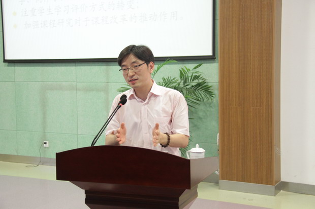 吕林海副教授的报告深入浅出、引经据典、挥洒自如。他从“国际课程改革的背景、理念及与中国的比较”开讲,让在场教师的课程视野一下开阔起来;随后,他简要从“国际课程改革的政策设计”和“国际课程改革的最新实践”两方面进行比较,九条启示发人深省;最后,吕教授从“科学理性素养的培养”和“最新国际教育比较审思中国课程的深层问题”等方面着重阐述了“中国课程改革的未来深层发展”。他利用详实的研究数据和丰富的图片资源,从中西方文化特征和模式比较等方面,对学生课堂学习行为的内涵构成和聚类分析,乃至对中国文化影响中国人的思维和行为特征作了深刻剖析,使得大家对课程理念背后的深层文化特征的把握逐渐清晰起来。他指出:“中国的课程改革不能再在原地打转,要深层思考、深层设计,要寻求突破,不能浮于表面。不改变民众的文化心态、价值取向和思维惯习,就不能培养出科学人才。”他提出的三个学校层面的课程改造抓手也使得大家对课程改革的思路豁然开朗起来。