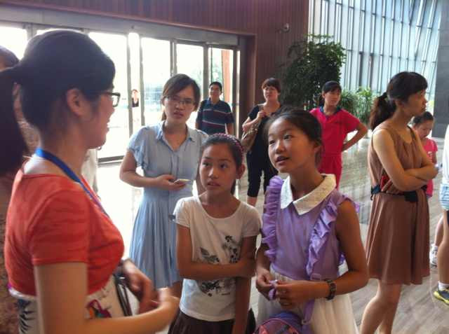 之后,我们又在向导的引导下,了解了动画的制作过程:制作动画的第一步必须要有规划、设计剧本,配音;其次再通过画图软件把一幅幅画面画出来,形成故事本。只见叔叔阿姨们用笔在一张垫板上画来画去,笔点到哪儿,电脑上鼠标就移动哪儿,画画非常方便,之后着色,一会一幅精美的图片就出炉了。然后再把画好的画拼接起来,进行拼接、合成、摄制,拍摄;最后录音,一部精美的动画片从形成了。开始制作到结束,都需要团队人员的团结协作,这是一个集体劳动的成果。