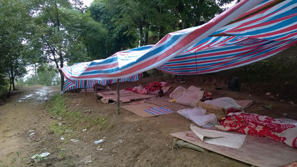 下午五点从昆明机场出发,他们连夜赶往昭通,由于道路崎岖,很多地方塌方,到达龙头山镇已经是第二天早上五点,但是离受灾最严重的甘家寨还有十公里的路程,进村唯一的道路塌方,工兵队一直在爆破抢修,每个人都在焦急地等待,道路打通,满载货物的卡车艰难地行走,历经千辛万苦,最终到达了甘家寨。村民早早排队等候,由于进村的小道也堵了,只有通过人工箩筐背,马儿驮这种原始的方式进入到每家每户。在龙头山镇奋战的六天时间里,王栋同志主要负责分发帐篷、水和面包、棉被等物资,晚上和灾民一起住在帐篷里。灾区震后天气异常恶劣,受灾群众众多,每每大雨滂沱,很多灾民没来得及搭帐篷,他总和几个退伍军人,光着膀子在雨地里穿梭,挨家帮忙搭帐篷。
