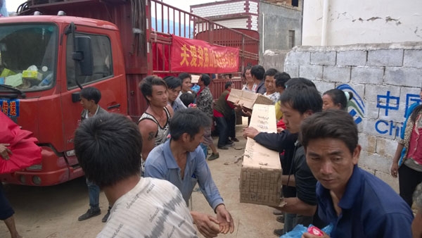 8月7日中午,王栋同志刚下火车就和几个退伍军人匆匆赶往昆明机场,那里有一批杭州企业家捐赠的抗灾物资,包括一百顶顶帐篷和两百桶纯净水,由于灾区天气比较炎热,防暑药品紧缺,他和几名来自全国各地的志愿者事先约好见面地点,在网上发帖召集当地的制药公司,云南福泽药业有限公司的领导捐赠了十箱藿香正气水和五箱抗生素以及一定数量的止血药,并且有四辆车子愿意把物资和药品直接送当地灾民的手里。