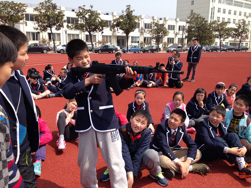 走,跑道上一架架枪械让孩子们看得目不暇接。教官给孩子们介绍每一款枪的操作方法,从简单到负责,孩子们又听得入了迷。接着每个班轮流可以和枪支亲密接触,操作,摆造型,拍照留念。