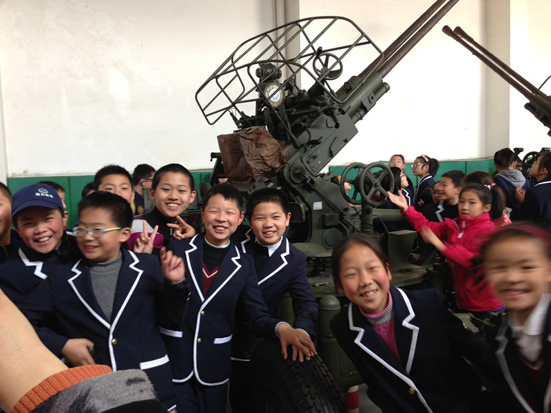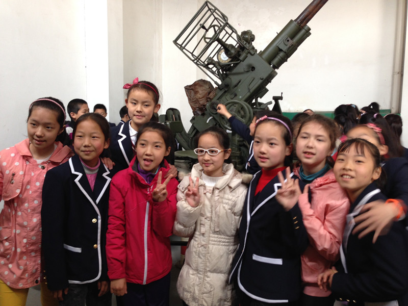 看,仓库里一排排保养如新的大炮,让孩子们惊叹不已。教官示范演示了这台大炮在作战过程中的工作原理,介绍了每个炮手担当的责任。示范结束,教官让孩子们自己动手操作这些威武的家伙。尤其是男生,乐此不疲。