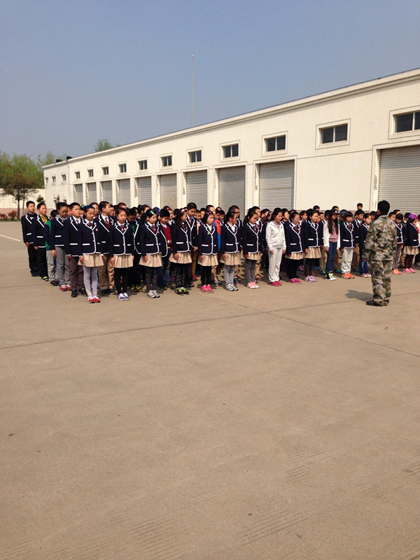 瞧,操场上他们排成直线,“哗哗”起步,落脚;“唰唰”敬礼,礼毕。孩子们第一次体验军队的生活。