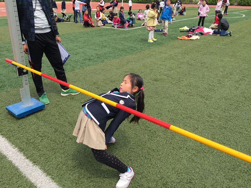 后仰过杆预选赛作为校园吉尼斯挑战赛的第一个项目为校园吉尼斯挑战赛以及整个体育节打响了“第一枪”。老师和孩子们经过了几个星期的等待,已经做好了迎接挑战的准备。后仰过杆作为一项看似简单,挑战却难的项目广受龙娃们的喜爱,这一项目作为参与度最广的项目之一,在绿色草坪上点燃了挑战者们内心的火。小小的横杆下,小小的一个空间,却给了运动员们尽情发挥的空间,更给小观众们带来了无限的期待。双手撑腰,身体后仰,一道美丽的弧线随之形成。艰难的挪动着双脚,缓慢的穿越横杆。快看!一、二年级可爱的龙娃们,那完美的韧带,头几乎可以触地!却无奈的败给了尚且不足的腿部及腰腹力量。再看!中高年级的龙娃们,同样小心的移动着双足,足够的腰腹与腿部力量足以使他们长时间维持后仰动作,尽可能穿越横杆,却同样无奈,败给了那么一点柔韧。此时的他们是多么羡慕低年级孩子们的柔韧,或者又在感叹当初没有勤加练习。对的,这就是后仰过杆的魅力,它可以吸引每一个孩子的参与,但它并不臣服于低年级柔韧较好的孩子们,也不会臣服于力量稍好的中高年级。只有兼柔韧与力量一体的强者,才能征服它,最终走上擂主的宝座。失败了重头再来,过关了挑战更高极限。擂主的宝座固然可贵,更可贵的是孩子们挑战极限的心,小小横杆,无限空间。这就是校园吉尼斯给我们的精彩与期待。