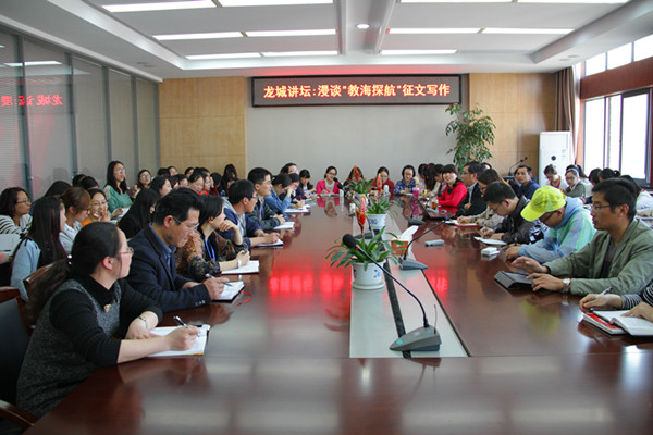 李校长首先指出论文选题要“新”,这个“新”可以来源于教育教学的困惑,他结合自己的“教海探航”之旅,畅谈了自己选题的经验与体会。同时,选题还要紧扣教育改革的方向,时刻关注教育新动态,注重创新。此外,选择的主题切口要小,以点突破,最忌“空、虚、泛”。李校长参照历年“教海探航”的优秀题材,配上幽默风趣的语言,为全体教师娓娓道来。
