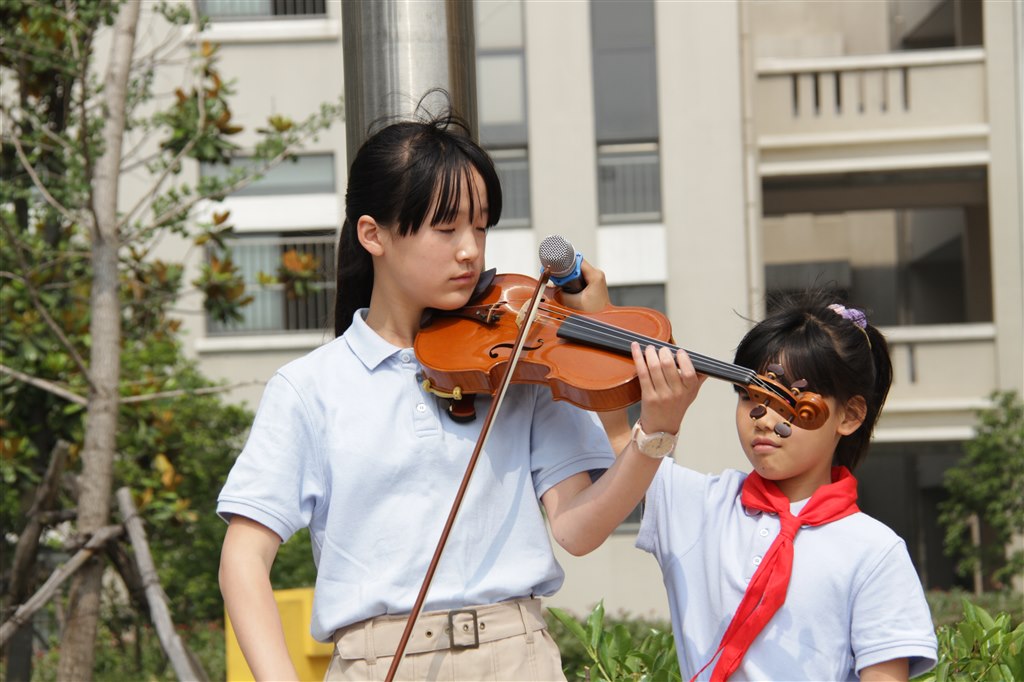 你瞧,今天的升旗仪式,二(5)的两位主持人就给我们带来了许多关于艺术节的爆料。去年的艺术节我们还记忆犹新,五年级的大姐姐给我们现场秀了一段小提琴表演,悠扬的琴声,徐徐的夏风,仿佛又把我们带回了去年艺术节的精彩瞬间。
