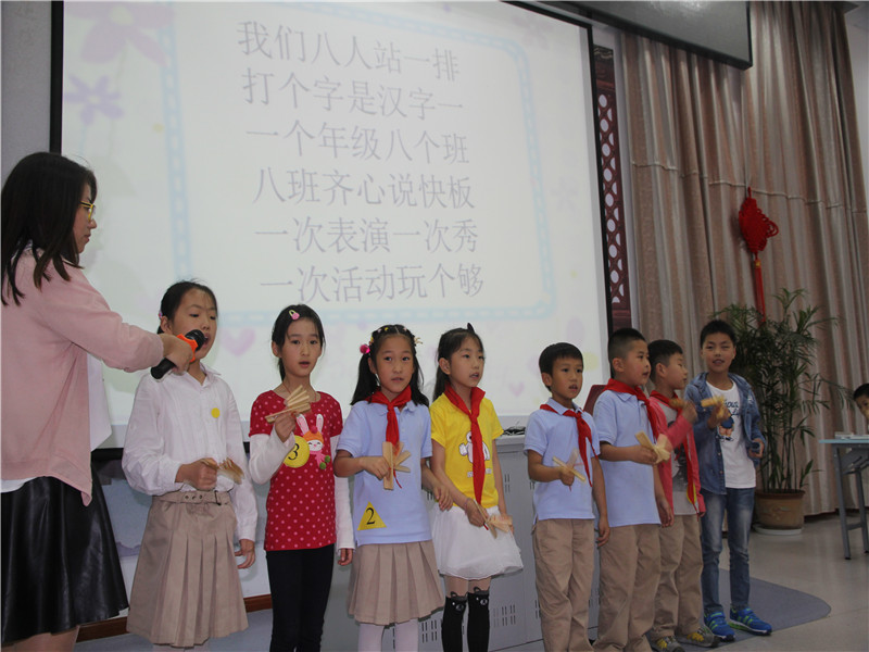 活泼可爱的小龙娃们站好队形,打起快板,噼噼啪啪开演啦!“一横一竖再一横,一撇一捺像个人,皮尺用来量衣裤,穿在身上正合身”“就是尺,就是尺!”“口字里面有两横,好像双目小瞳仁,看书上网做作业,注意保护大眼睛”……在他们的口中,神奇的汉字被编进了有趣的字谜!