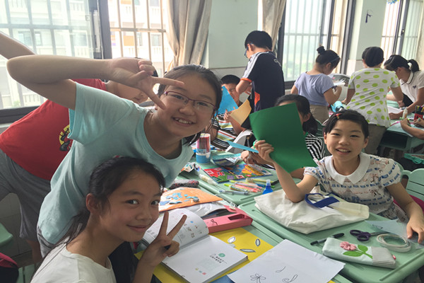 说干就干,在江老师的指导下,研习小组的组长对组员进行了合理分工。小组内字写得好的同学负责海报的文字部分,擅长绘画的则负责插图绘制,对这两项都不是很自信的同学可不能闲着,他们负责上色、折剪、黏贴等工作。