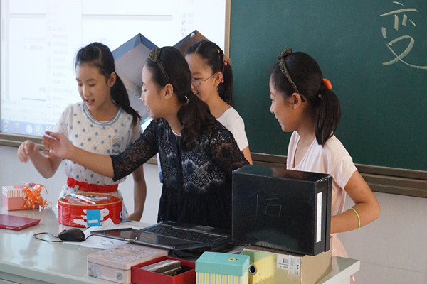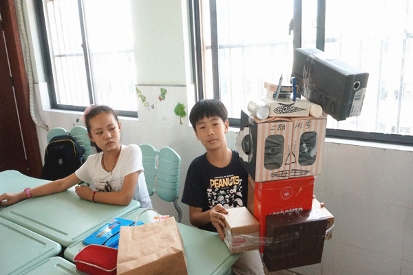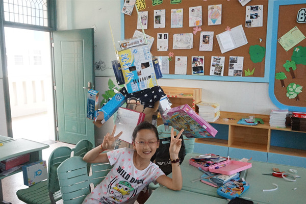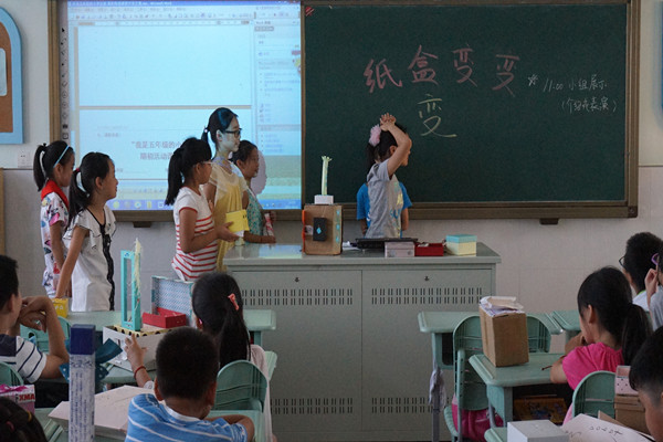 一个小小的盒子可以做什么?也许对你们来说它就仅仅是一个盒子,但是在我们的眼中,它小小的身体里蕴含着巨大的能量。看!我们可以把一个废弃的盒子进行装饰,变废为宝,成为我们班级布置的一部分,我们也可以把一些盒子拼装在一起,变成机器人、小汽车、摩天大楼、万圣节的面具等等。除此以外,我们还利用这些制作好的盒子进行了形式多样的表演:有的小组用话剧的形式向大家展示机器人的新用途,有的小组用讲述的形式向大家介绍自己的制作成果,还有的小组用搞怪的形式让大家疲惫了一天的身心得到了放松。