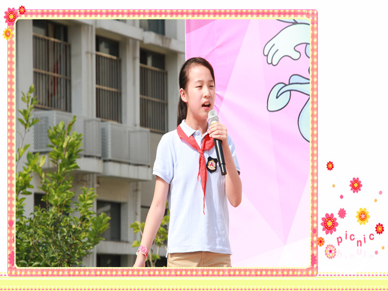 “你好,现在我们看到的是一个蓝色的星球——地球,地球上面百分之71都是水被覆盖,这些水孕育了地球上面数百万种生物,在西方,人们形象地称地球为盖亚,意思为大地之母,众神之母。现在的地球已经46亿岁了,现在请往那边走……”这是五一班的高诗怡在分享她参加新北区活动的经验呢。为了更好地让其他同学了解这个活动的过程,她还自编自导了一个情景剧,将其中的酸甜苦辣生动地呈现出来。
