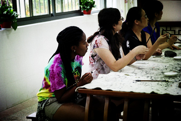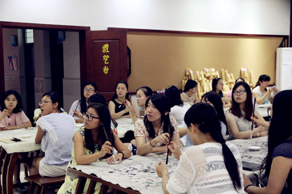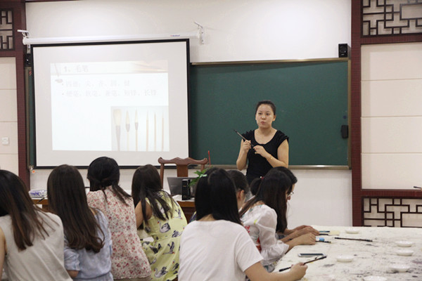 该俱乐部的特聘教师——江健老师为大家准备了精彩的一课。她先从书写工具、执笔运腕、笔法墨法三方面和大家介绍。每个人都听得津津有味,也逐渐了解了毛笔的四德:尖、齐、圆、健,知道了毛笔有硬毫、软毫、兼毫、短锋、长锋之分。同时更加清楚如何去选择文房四宝中的其他三宝。而执笔运腕和笔法墨法的讲解,大家不仅知道了如何灵活运用毛笔,更学会了如何从艺术的角度去欣赏一幅书法。