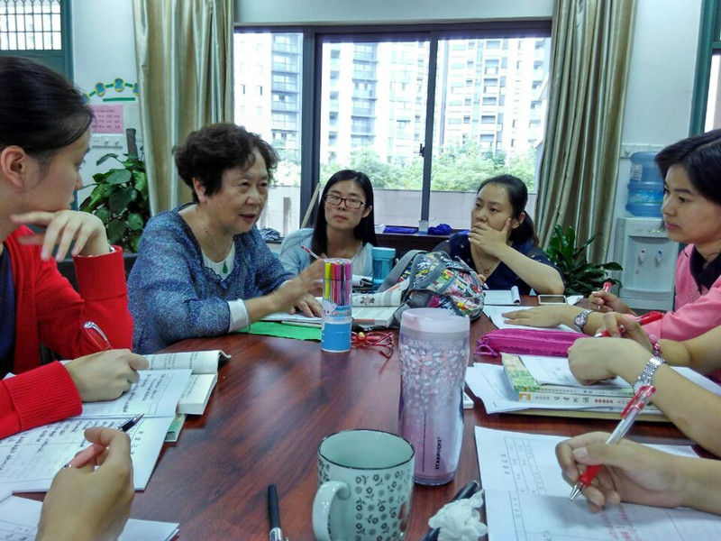 课后,一年级的全体语文教师齐聚办公室,在张老师的带领下进行研讨。张老师肯定了两位老师会创造,有绘本思想,同时她强调拼音教学一定要给孩子演示字母发音的部位,让孩子找到感觉,才能读得准;并且在教学的过程中将游戏和学习习惯相结合,如做指读的游戏,点字成金的游戏等。最后张老师总结拼音教学的改革之路是具有挑战性的,我们在教学中不仅要重视基础,教扎实;而且还要踩在巨人的肩膀上,结合汉字、绘本、儿歌、游戏创造出自己的教学特色。(摄/文 梁慧慧)