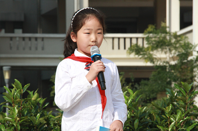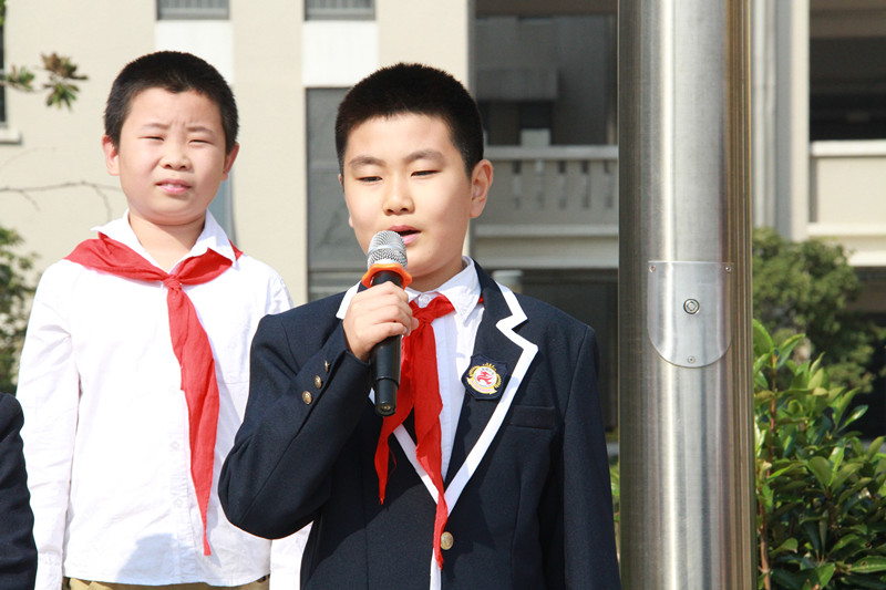 阳光,蓝天,相印出刺眼的颜色;龙娃,红领巾,相映出夺目的光彩。迎着久违的秋阳,龙城小学第七周升旗仪式如期举行。这次升旗仪式由四4班的小龙娃来主持开展,升旗手王学成同学站在升旗台上,无比骄傲自豪。