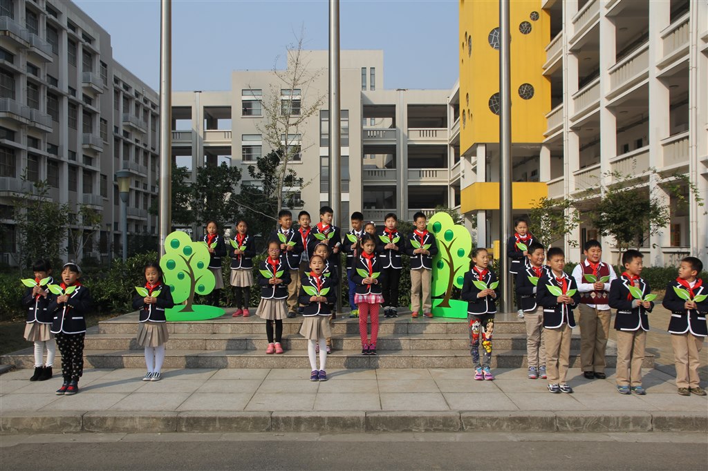 听,伴随着三年级《做一片最美的叶子》诗朗诵,龙城小学迎来了第十周升旗仪式。