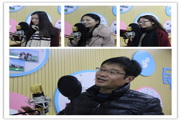 终于可以录歌了,瞧,丁超老师唱得如此深情,可是试听一下,音频卡带了,无语的他只好再来一次。杨康老师既要调这设备又要调那音质,还要高歌一曲《夜空中最亮的星》,虽忙,但却不亦乐乎。此刻,教体育的李磊老师,已经变动为静,静静地唱出一首粤语版的歌曲。薛佳老师那美丽的嗓音因感冒而变得沙哑,但她依然坚持到底,录制了一首《星月神话》,唱出的声音格外动听。