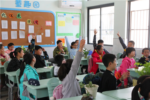 大家还在讨论着,下课铃却响了起来。“不知不觉就下课了,我最后说几句,”汪老师说,“养花一定要自己去尝试,才会知道该怎么做!”在同学们热烈的掌声中,汪老师离开了教室。经过了这节有趣的课,同学们更加了解植物了!(图文:陈凯)