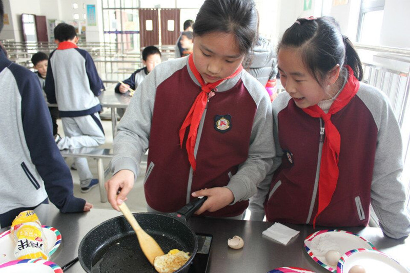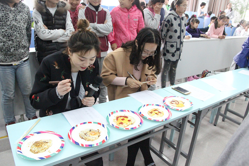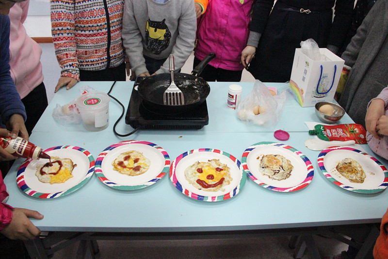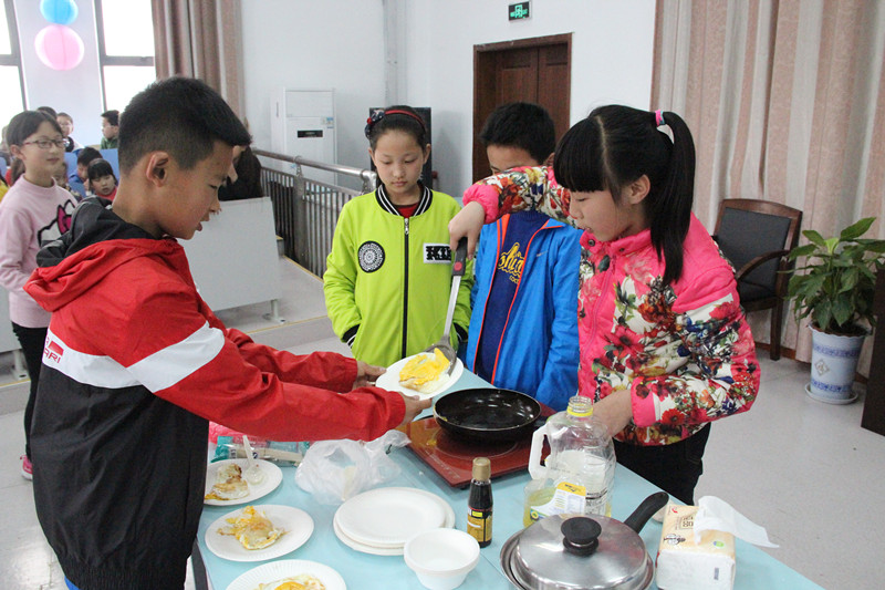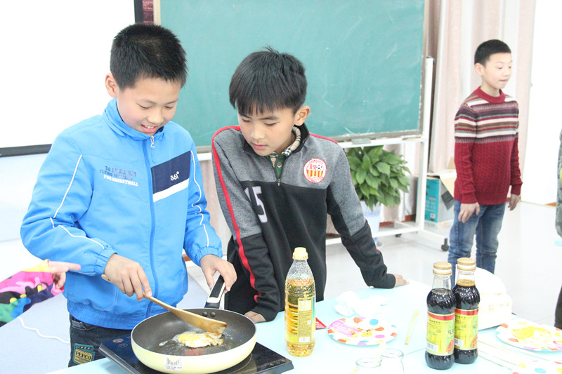 上周四中午,四年级四个班齐聚多媒体教室,摆上电磁炉,小油锅,放好各种调味料,我们的煎鸡蛋比赛正式开始啦!五个小选手个个摩拳擦掌,小心翼翼,鸡蛋在孩子们的手中变得特别听话,“呲拉拉”,油锅里的鸡蛋慢慢变成了小太阳,再放上自己喜欢的调味料,自己做的鸡蛋真是美味哟!