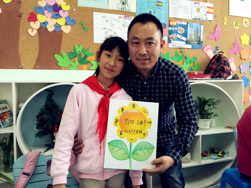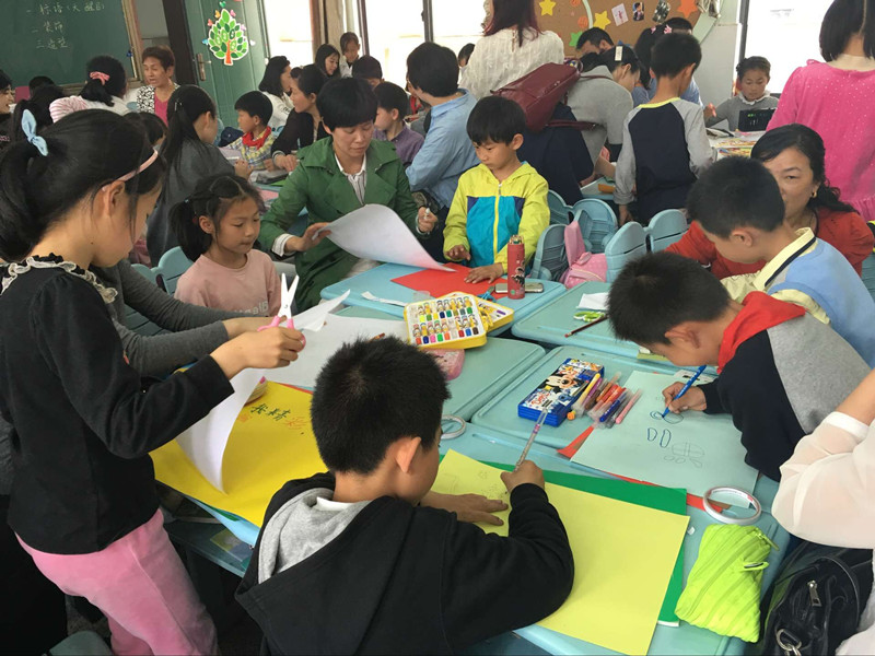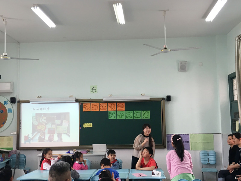 课堂展示之后,各班班主任老师带着家长们走到孩子身边,和孩子们一起制作运动会加油牌。大家一起画一画,剪一剪,贴一贴,写一写,一块块多样而精致的加油牌就在家长和孩子灵巧的双手中呈现出来。大家一起为接下来的运动会加油助威,场面默契而温馨。