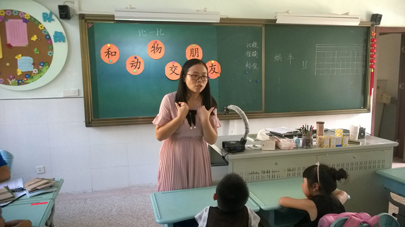 在动物的世界里,他们可是大显身手。那么,我们小龙娃们有什么本领呢?他们通过“比大小”、“比高矮”、“比轻重”、“比长短”等形式不仅重新认识了小动物,还勇敢地担任“小老师”展示自己的数学本领。最后,通过趣味拓展游戏,小龙娃们不仅知道了动物与动物之间的区别,而且还懂得互相尊重与生命关怀,小龙娃们在欢乐的音乐中一边念着儿歌,一边做着动作,不知不觉地学会了倾听,学会了尊重与合作,融入了课堂,也在不知不觉中学会了常规。