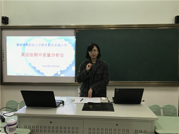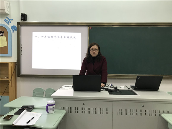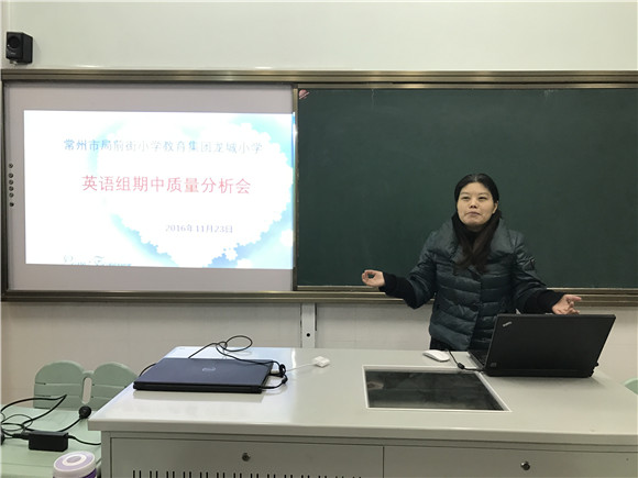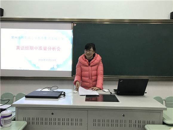 本次活动分为两个板块,首先由各年级备课组长就此次的阶段质量调研进行分析交流。四年级的李丹丹老师由调研中反映出的不足从学生、老师、个体三个方面提出了今后努力的方向。老师在引导学生养成良好的英语学习习惯的同时,更根据不同的学情灵活调控教学机制,并关注每个孩子,做好提优补差的工作。五年级的池群老师分析了中高年级英语学习的变化。知识容量的增加和难度的上升给学生带来巨大的挑战。面对这些变化,老师要帮助学生尽快适应高年级的英语学习,与此同时,要注重过程性评价,并适当拓展课外内容,培养学生的自学能力。六年级的程鑫老师认为六年级要注重培养孩子学习的热情。引导孩子不仅要学好课本上的知识,也要加强课外阅读,提升综合语言运用能力。随后教研组长金蓉老师肯定了大家所取得的成绩,同时也向大家提出了求实创新的要求,在打实基础的同时努力创新,争取再创辉煌。周亚军副校长在聆听了大家的发言后,对大家前期所付出的努力和取得的成绩予以了肯定,同时也希望大家在今后的工作中能进一步加强教育教学研究,课内外结合,为每个孩子创造提升的空间。