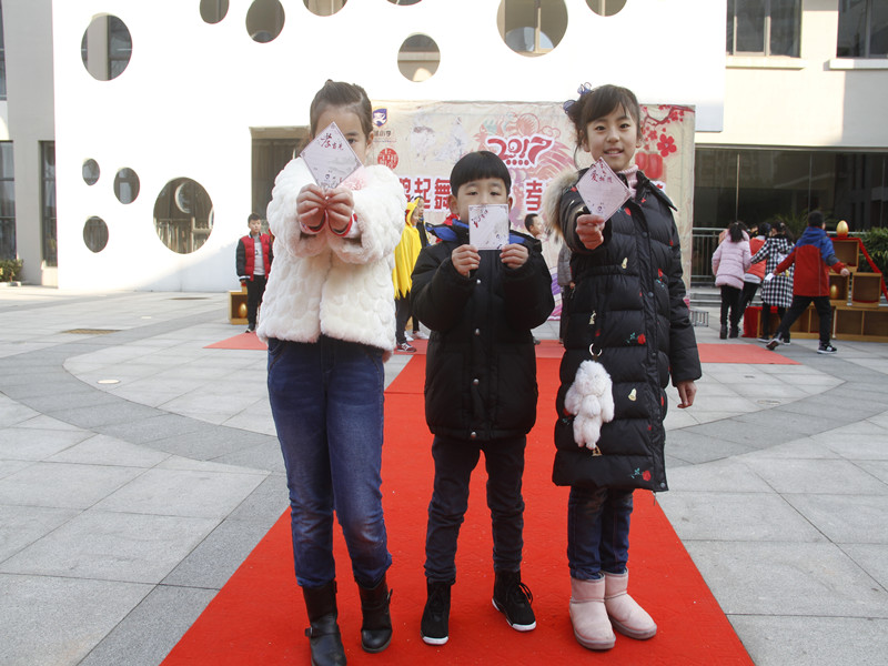 刚走进校园就听见了熟悉悦耳的小鸡舞音乐声,不由得想要冲上舞台和小伙伴们一起跳上一段。是的,今天每一个小龙娃都可以神气地展示自己。只要走上舞台都可以收获一张新学期祝福卡。卡片上写着“孝当先”“礼常伴”“爱相随”。“孝”“礼”“爱”这不正是中华民族伟大的文化精髓,也是希望每一个小龙娃能够做到“孝当先”“礼常伴”让“爱相随”。