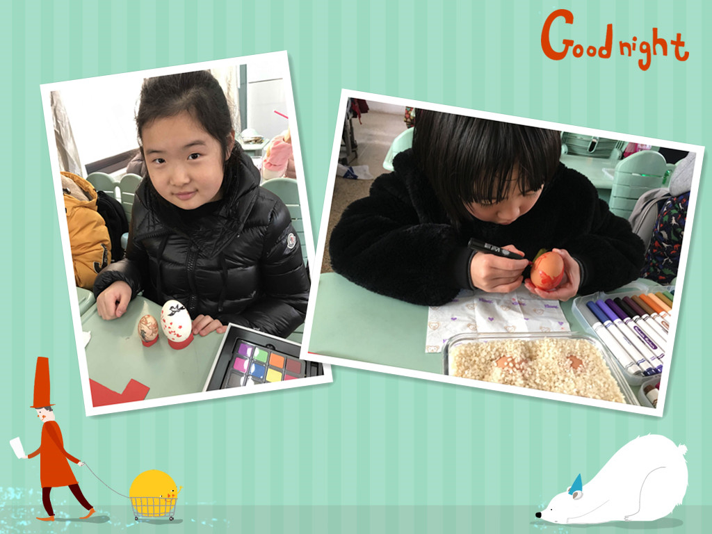“我画的是喜上眉梢,你看,这是一只喜鹊,这是树枝……”一名小龙娃举起自己现场彩绘的蛋画,向其他小朋友和老师分享道。蛋画,是艺术启蒙之源,系中国艺术特色,精美的蛋壳,孕育着出色的艺术家,从战国时期到清末民初,有“齐鲁雕丸”之记载,其风格历史悠久,方寸之间,可致景于万千景象。而画画能培养小朋友对色彩的运用能力和对事物的观察和想象能力。整个绘蛋的过程,不仅促进小龙娃们艺术兴趣和天赋发展。同时,老师可以借孩子的绘画作品了解孩子的性格和爱好,去体验他们纯真的童心世界,理解他们的思维和梦想,与他们分享从中得到的快乐这就是蛋画的妙处所在。作品展示分享过程中,有的小朋友说这蛋画是对家人的祝福,有的说我蛋画上面图案是小黄人、还有说这使用了渐变色手法……老师和其他小朋友们认真倾听他们的画中的内容和故事,带着一片童心去欣赏他们的智慧。