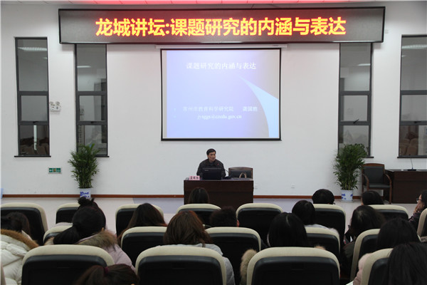 二月,龙城校园的垂丝海棠已经含苞待放,它在点点绿意中装扮着生机勃勃的春天。二月,龙城校园的研究之风已经吹起,常州市教科院的龚国胜主任为我们带来了题为课题研究的内涵与表达的专题讲座。“二十四番花信风”,这一风为我们龙城小学吹开了最美的研究之花。