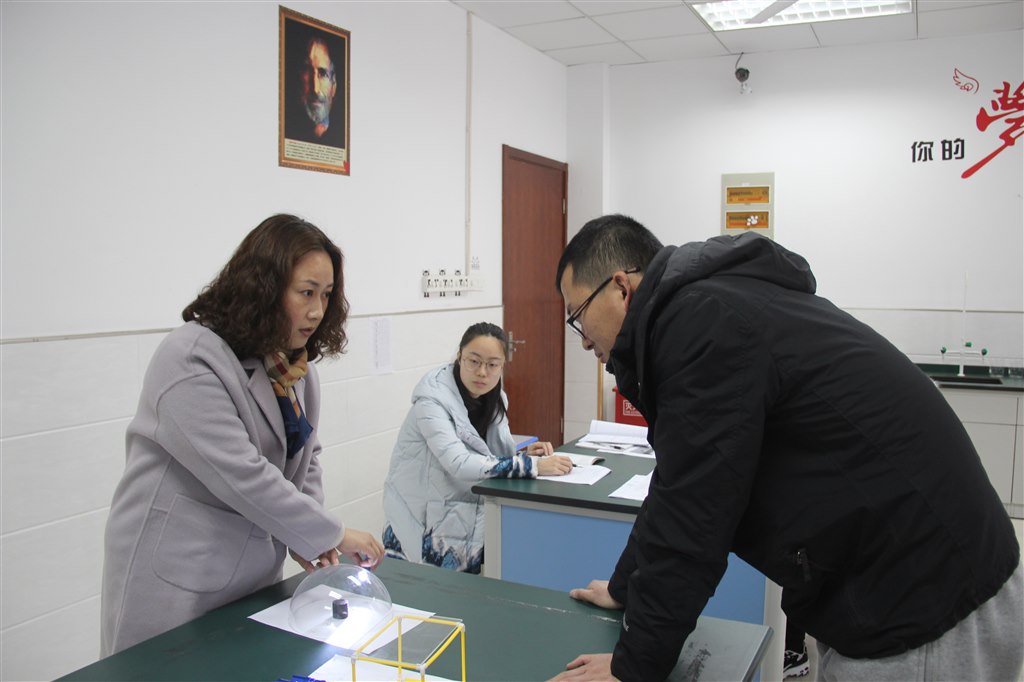 李波老师细心指导了实验细节,并提出运用环节与前面探究环节有些脱节。徐诚老师认为:一、目标要明确。二、重点在哪里,根据重点分配时间,所有教学活动都是为教学目标服务的。三、再明晰每一部分小目标。四、实验前后都要有思考。陆丹怡老师也提到了重点问题。经雏月老师关注了教师怎样倾听学生,问题的指向性等。