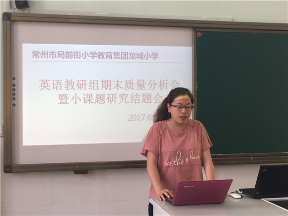 会议伊始,教研组长金蓉老师对每一位英语老师在本学期中的精诚合作、勇于挑战、努力拼搏、乐于奉献、关爱学生、积极钻研教育教学和教科研等方面进行了点赞,为老师们的专业成长感到欣慰和骄傲,同时真诚感谢所有老师们的相遇和付出。然后,金老师对全校期末测试数据进行了分析。接着,各备课组的每一位老师走上讲台,或对教育教学进行了回顾总结和分析,或对主持的小课题经行了汇报和展示。