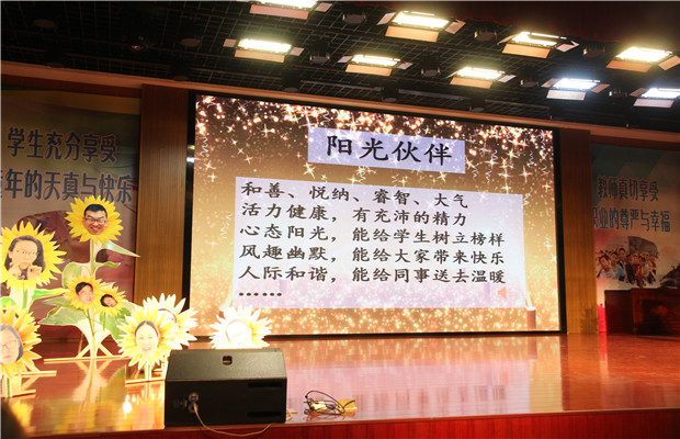 节目一开始,宦欢老师和戴云翔老师风趣幽默的主持就带动了全场,将大家带进欢声笑语的海洋。新教师单馨芸老师代表全体新教师上台发言,言语中的斗志与激情深深感染着在座的每一位老师。“我的未来不是梦,我认真过好每一分钟;我的未来不是梦,我的心跟着希望在动……”伴随着激动人心的曲子,新教师们集体亮相。每个人的自我介绍都各有特点。自信大方的舞台形象,让大家看到了一群有潜力、有活力、有责任心的青年。希望他们在龙城这个温暖的大家庭里大展身手、大放异彩。