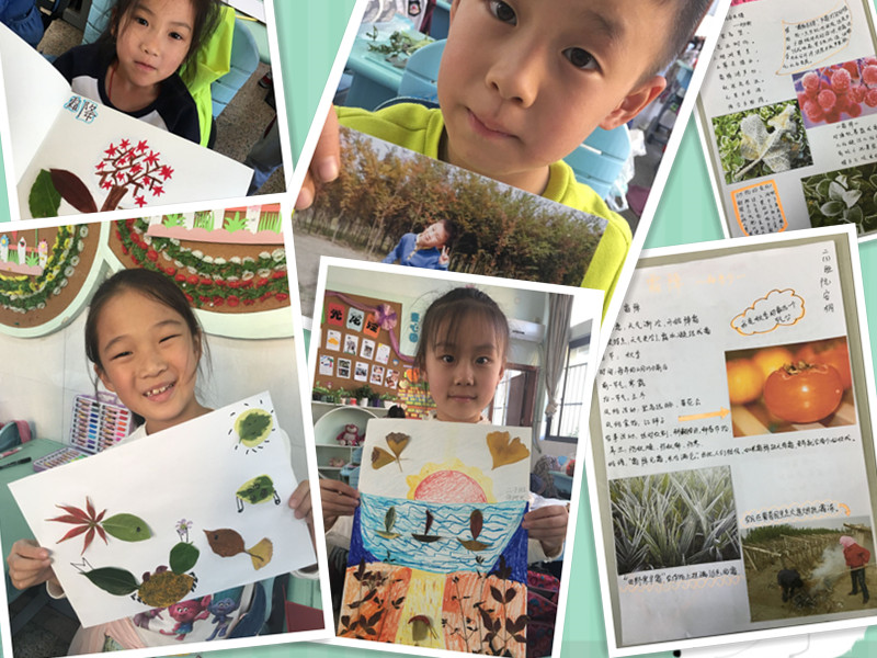每个班的小龙娃都学着用相机去拍下身边的人与物,并在课堂上讲述属于自己感知霜降的点滴;还有小龙娃收集了飘落至地上的片片落叶,将它们做成了一幅幅美美的叶贴画;更有小诗人写下了美美的秋日小诗,用文字诠释了秋日的美好。