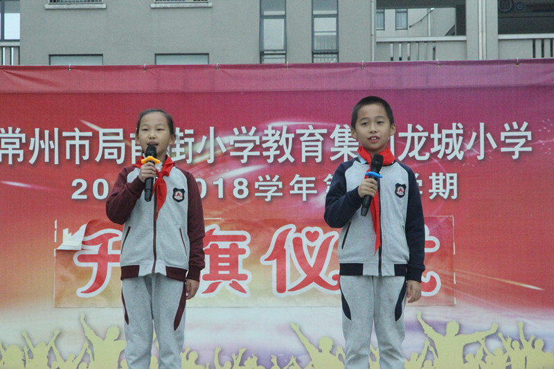 常州市龙城小学第2017-2018学年第一学期第12周升旗仪式正在进行。在激昂的《义勇军进行曲》中,升旗手袁瑾萱振臂一挥,鲜艳的五星红旗徐徐展开,在初升的阳光映照下,全年级师生的注目中,迎着初升的太阳,在晨曦中迎风飘扬在龙城小学的上空。三(2)班的小龙娃们以宽容为主题,给大家带来了两则意义深刻的小故事,“钉子能拔出,那个伤口将永远存在。话语的伤痛就像真实的伤痛一样令人无法承受。 ”“周总理尚能不计较理发师的‘伤害’,我们的小龙娃也要做一个善良宽容的人!”