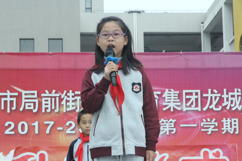 本次升旗仪式上,小主持人还给大家带来了一个激动人心的好消息,“龙城小学一年一度的‘好声音’比赛又要开始啦!”话音未落,在场的同学们便兴奋地欢呼起来!这可是他们每年最期待的精彩赛事了,本次升旗仪式的校园演说家潘潘,已经是参加过两次的“老选手了”!虽然两次决赛都没有拿到名次,但是她从没有灰心,用依然自信的声音鼓励在场的同学都能做一个坚持不懈、不怕失败的人!