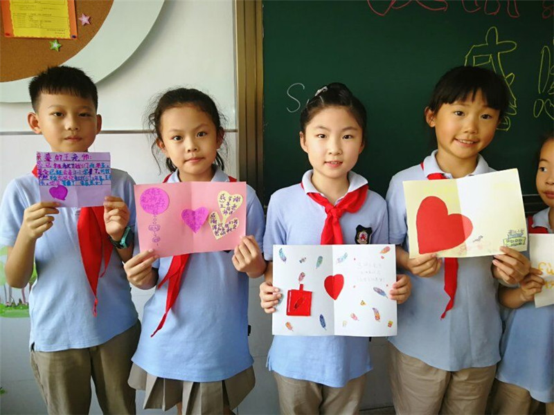 认识了新老师,也不能忘怀老教师的悉心教导,孩子们一起回忆老师与自己的故事,一起感恩老师,并亲自动手制作了感恩卡送给老师!孩子们一起回忆、讨论、设计、制作、赠送,孩子们深情感恩,怀念老师!