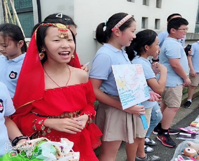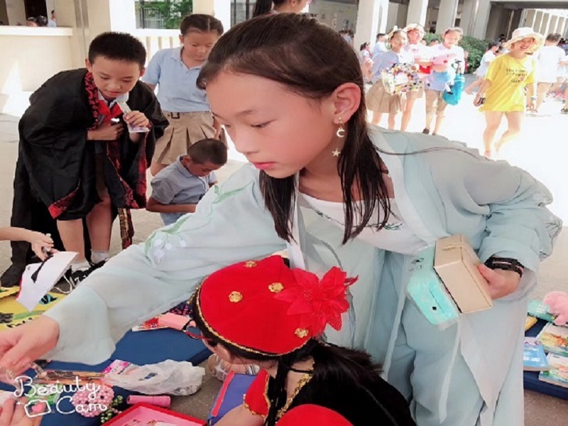 下午1点40分,活动准时开始了。此时的龙城校园仿佛跨越了时空,令人仿佛置身两千年前的丝绸之路。六年级的小龙娃们也打扮成各国商贩身着属于自己的“奇装异服”,卖力地吆喝着。不同国家不同风俗的“商人”看起来是如此和谐,让人不禁神往。2000年前的大汉帝国,开辟出举世闻名的“丝绸之路”,不仅令大汉国威远扬,更令东西方从此之后有了更深刻的交流。小龙娃们肩负着民族复兴的希望,在丝路之上的童心,毕竟筑起通向未来的梦想!!