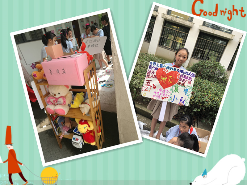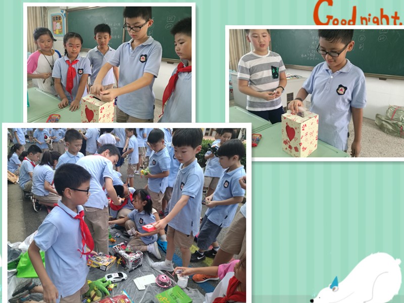 到了爱心义卖环节,孩子们无比兴奋,大家带上宣传海报和提前标好价格的物品以班级为单位摆摊义卖。很多孩子们穿着商人的服饰,不停地叫卖,整个校园成了热闹的海洋。最后,大家将所得钱财投入爱心箱,为新疆的小伙伴们献上自己的一份爱心。