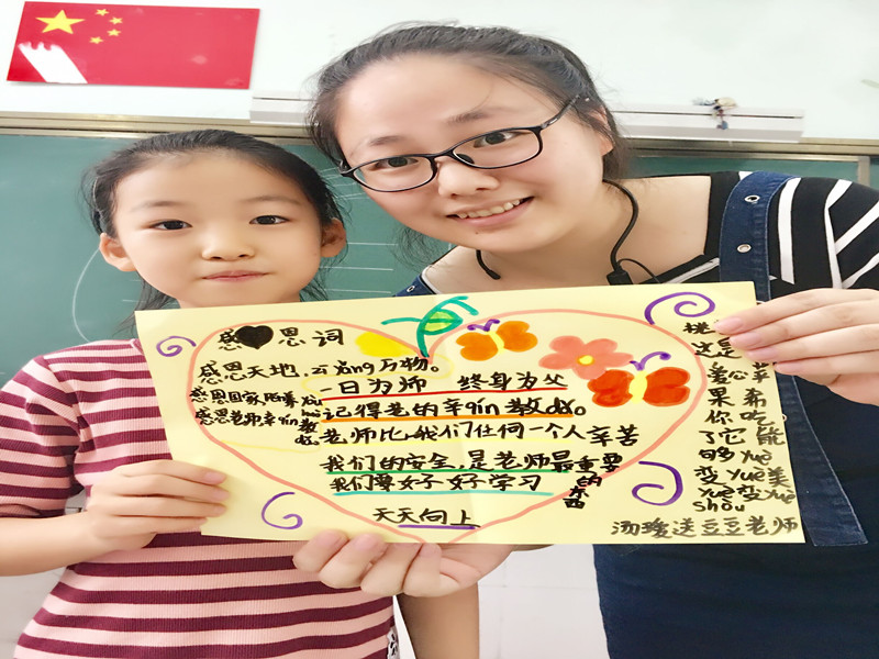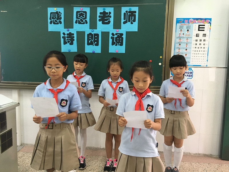 三年级的小龙娃们人人都是朗读者。他们利用课后时间去搜集一些歌颂老师的诗歌或者散文,在教师节当天送给自己的老师。课间,小龙娃们还制作了精美的贺卡,每一张小小的卡片都传递着对老师深深的感谢与祝愿。