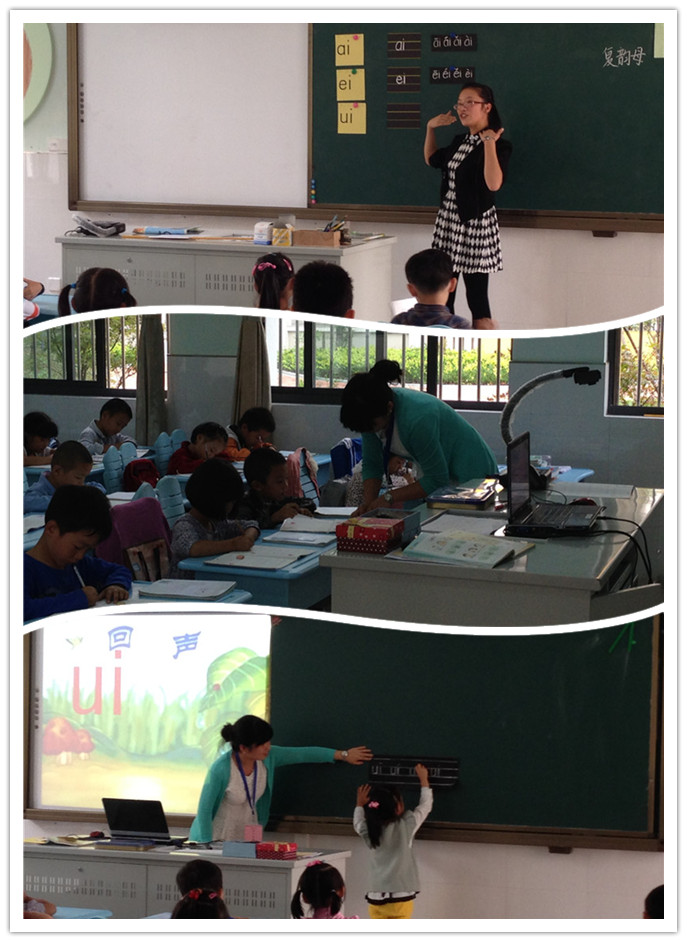 一年级组的赛课由两位青年教师唐旎和宦欢执教复韵母《aieiui》第一课时。小语专家张七中老师、李娜校长等领导莅临指导,龙小所有语文老师参与听课。同样的一节课,两位老师从不同的角度用不同的方法进行了教学,唐旎老师的课扎实有效,颇具童趣,教学层次清晰,课堂有张有弛,结构特别紧凑;宦欢老师以一个故事情境贯穿始终,设计独具匠心,中间穿插了形式多样的活动环节,让孩子们在玩中学,学中玩。各位听课老师都为两位新老师在短短一个月内的进步而欣喜,为她们自己独具匠心的创新而惊奇。
