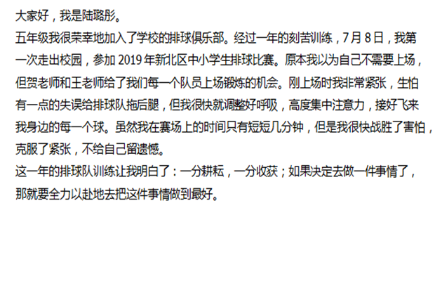 2019年常州市青少年暑期阳光体育夏令营排球营陆璐彤感悟